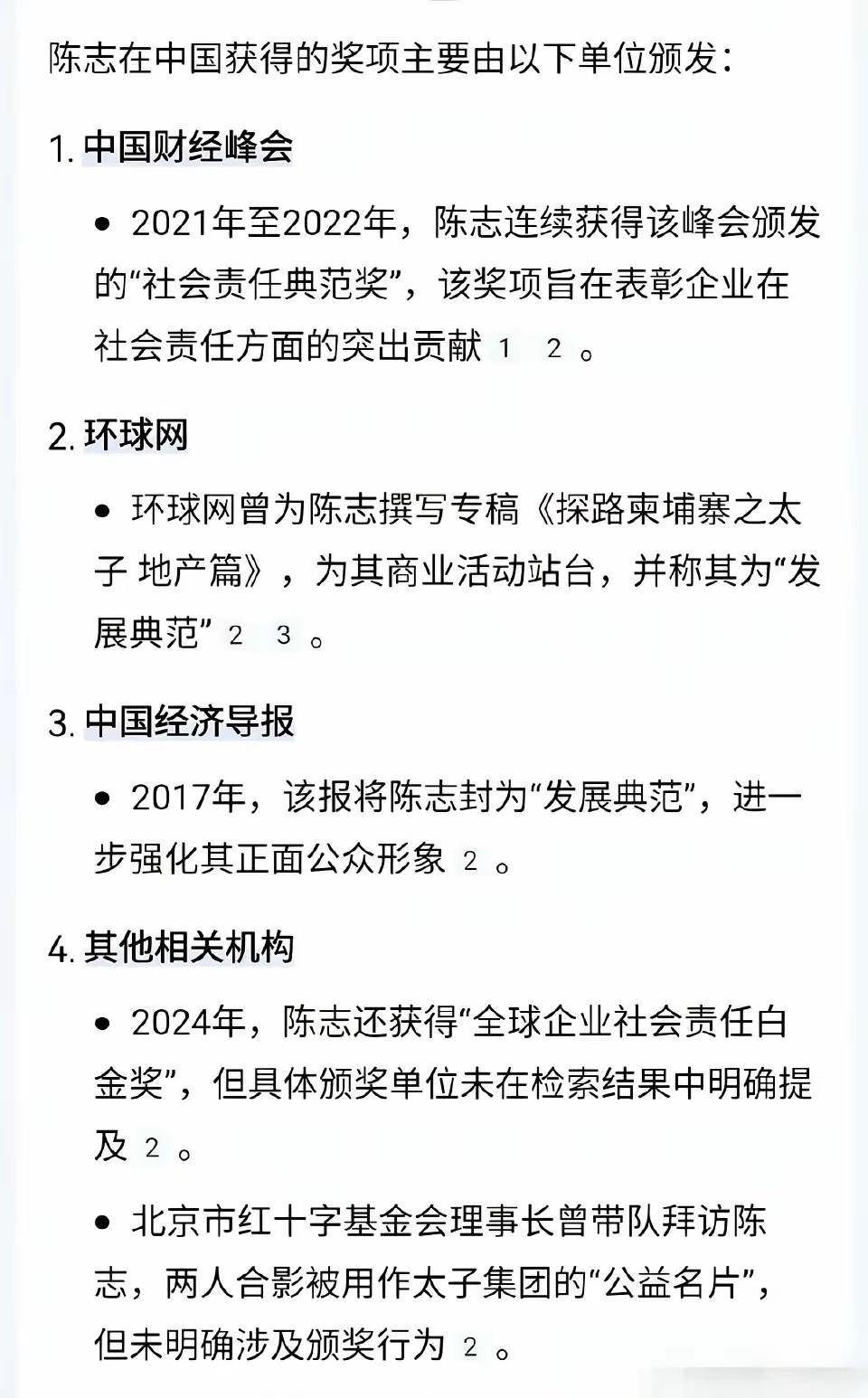 有意思的是,陈志子在大陆的一些组织和媒体中也比较活跃,并被他们授予一些荣誉。但根据这些组织和媒体授予此类荣誉的潜规则,陈志或太子集团,或许与这些组织、媒体存在金钱捐赠的关系。