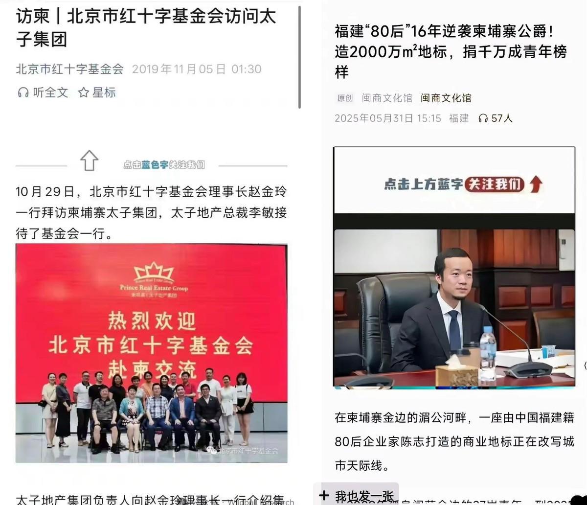 京报网在报道中称,公开资料显示,他于2009年进入柬埔寨市场,2015年正式成立“太子集团”,短短十年间打造出涵盖地产、金融、能源、通讯及银行等多领域的商业版图。集团旗下“太子银行(Prince Bank)”已成为柬埔寨知名私营银行之一。