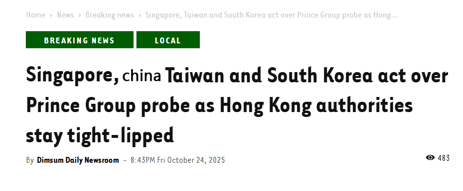 10月24日的《海峡时报》报道称,美国司法机构在指控中点名了多个与中国香港有联系的实体。HK01的一项调查发现,陈志控制着三家中国香港上市公司,并拥有整座商业大楼和一栋山顶别墅。多个司法管辖区的当局已展开调查,而中国香港官方则没有发表实质性评论。陈志及其合伙人为大股东的三家上市公司——Geotech Holdings (1707)、Khoon Group (0924) 和 FMS Holdings (1721) 的交易继续进行,没有暂停。