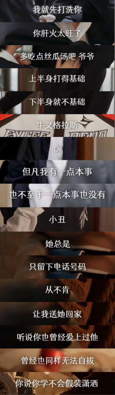 诸如此类,还有“燕子,没有你我可怎么活?”、“英子,开门”、你们不要再打啦…