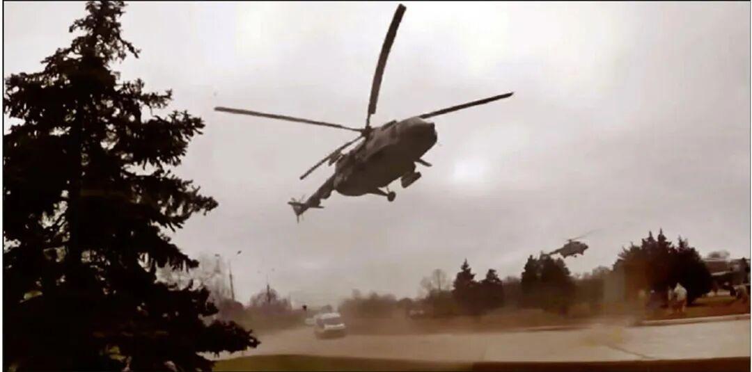 图1. 两架降落在马里乌波尔城内的乌军米-8直升机