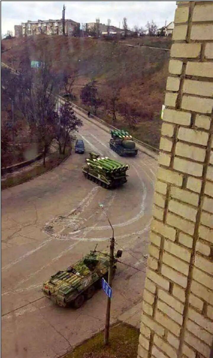 图3. 登陆别尔江斯克的俄军防空单位,正在从市区中穿行而过
