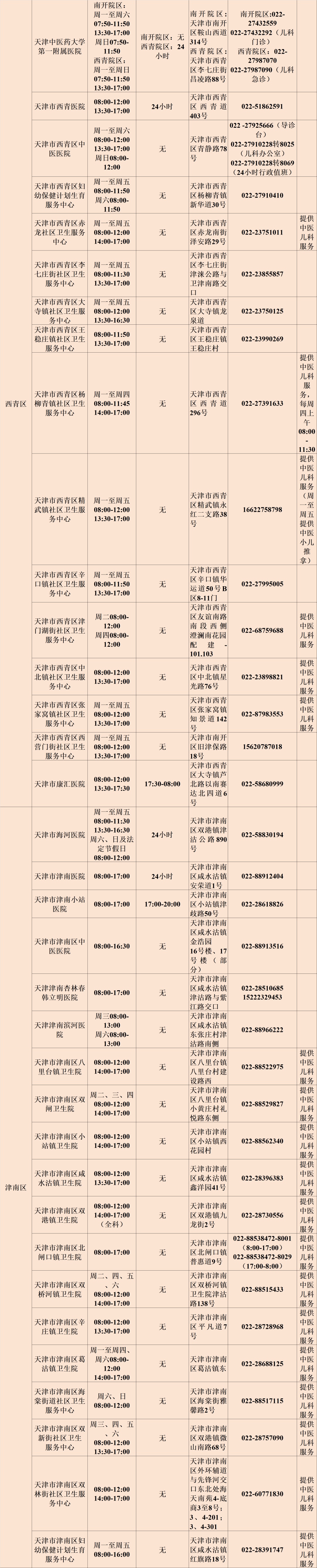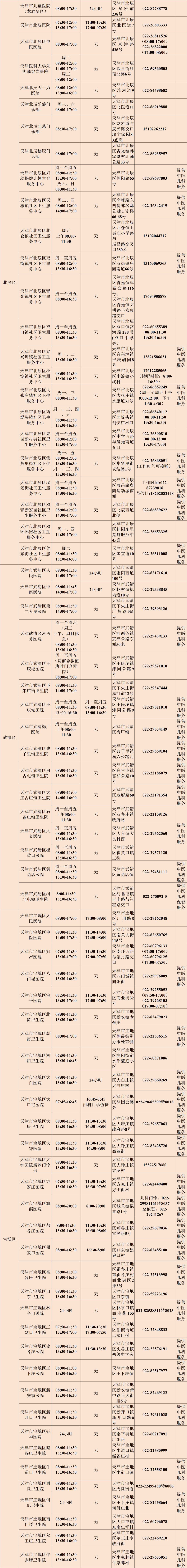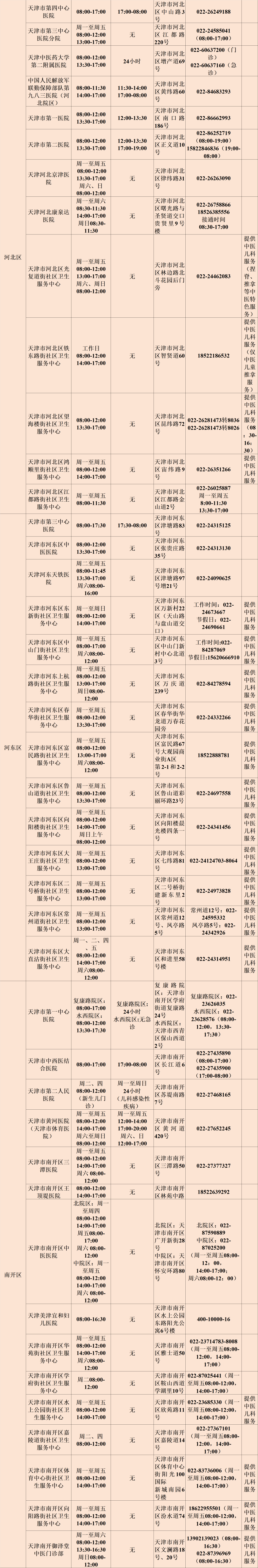 为满足秋冬季儿科就诊需求,天津医疗机构采取了优化服务流程、延长应诊时间等多项举措。现将截至目前的各有关医疗机构儿科诊疗信息更新如下: