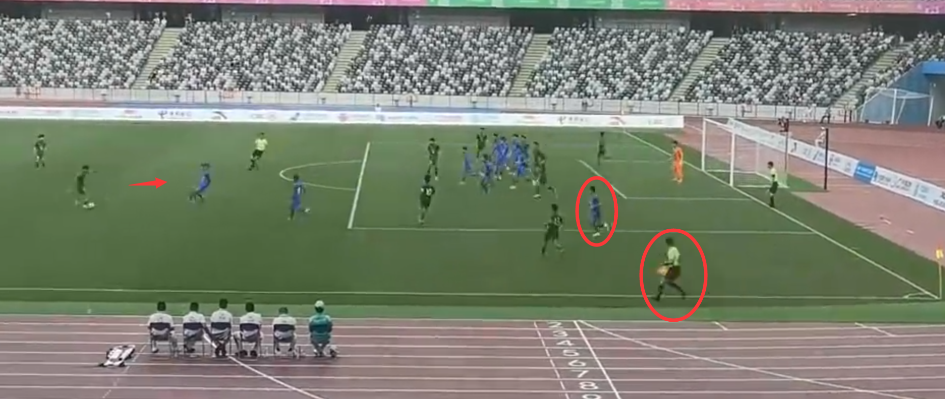 从视频回放来看,山东队有一名球员一直在拖后,而边线裁判的目光似乎并未关注到传球瞬间,只关注了禁区的情况,因此出现了重大误判。边裁出现误判并非个例,在第27轮中超联赛中,边线裁判就曾出现两次误判,一次导致张呈栋情绪失控被罚下并禁赛5场、罚款5万,另一次是河南队对阵亚泰队时,河南队的明显越位被裁判视而不见。