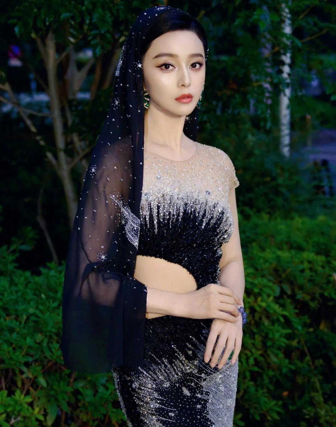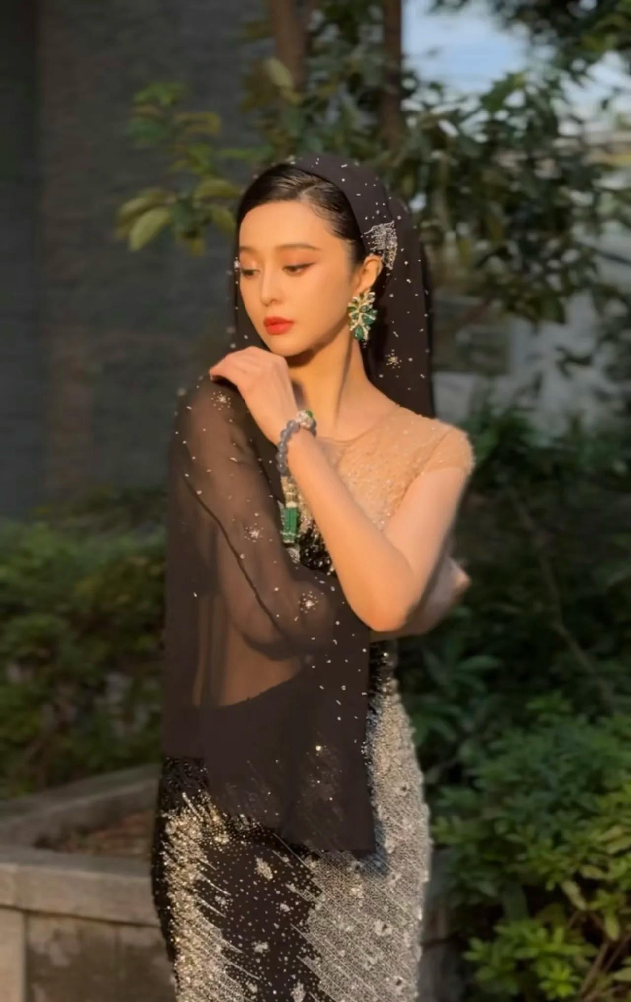 可能是已经在东南亚等国呆的太久的缘故,范冰冰的第二套服饰不仅美,还美的很有特色,镶着碎钻的头巾遮住了发型,愈发凸显她的五官。
