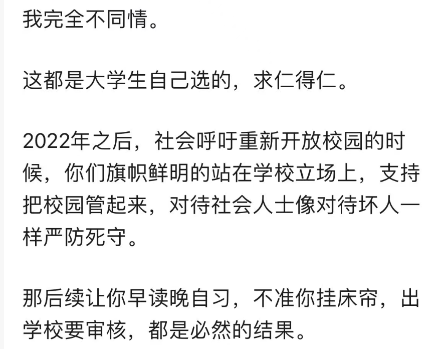 有网友回忆起以前的大学生活,那时的大学生被当作成年人看待,享有充分的自由和尊重。然而,如今的大学生却似乎被剥夺了这些权利。