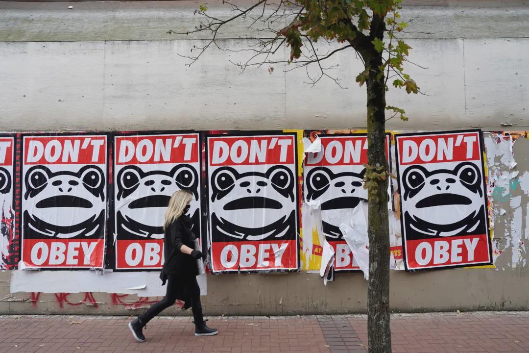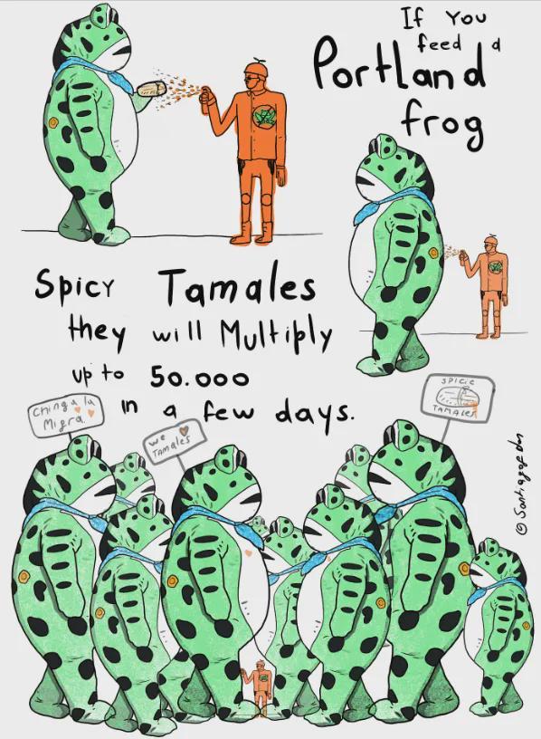 在波特兰等主要抗议城市的街道上,甚至出现了连绵的卖崽蛙海报,上面用大号字写着:“不要屈服”。