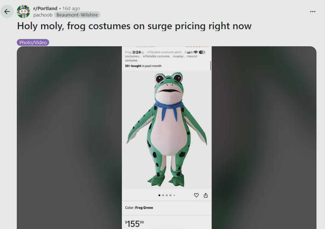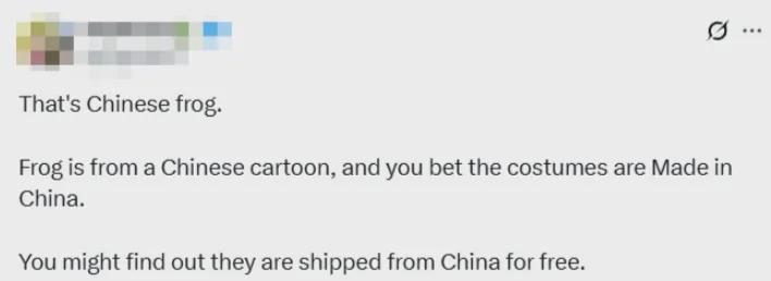 就以充气玩偶服来说,亚马逊上大部分的链接,都显示原产于中国,接受美国媒体采访的供货商也大方承认就是从中国进口的,现在随着需求暴增,正在紧急补货。很搞笑的是,右翼老哥们,已经开始利用这一点反击抗议者,“这是中国青蛙,服装也是中国制造,它们很可能是中国免费送到美国来搞事的”、“当意识形态输出到美国,它将被从亚马逊上购买的、来自中国的青蛙和独角兽服装所包裹”。