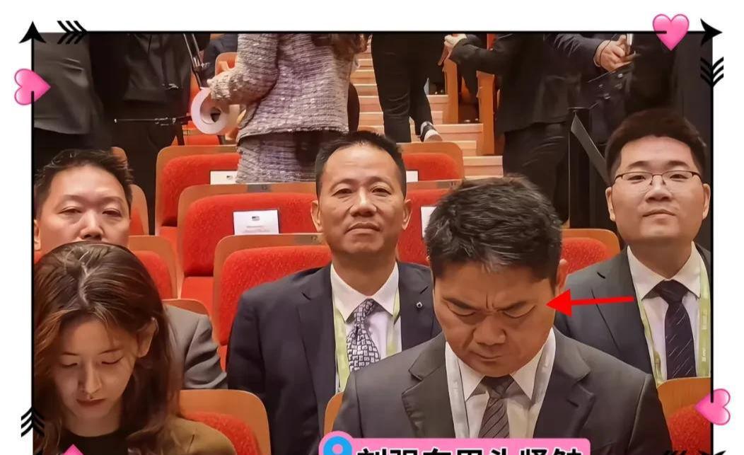 会议现场众多媒体云集,刘强东和章泽天坐在了较为靠前的位置。刘强东身着笔挺的西装,挂着工作牌,表情严肃,眉头紧皱,看起来心情似乎并不轻松。与他身后两人轻松的神情形成了鲜明的对比,这一画面也被网友敏锐地捕捉到了。
