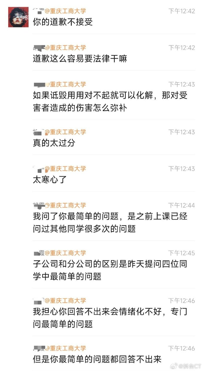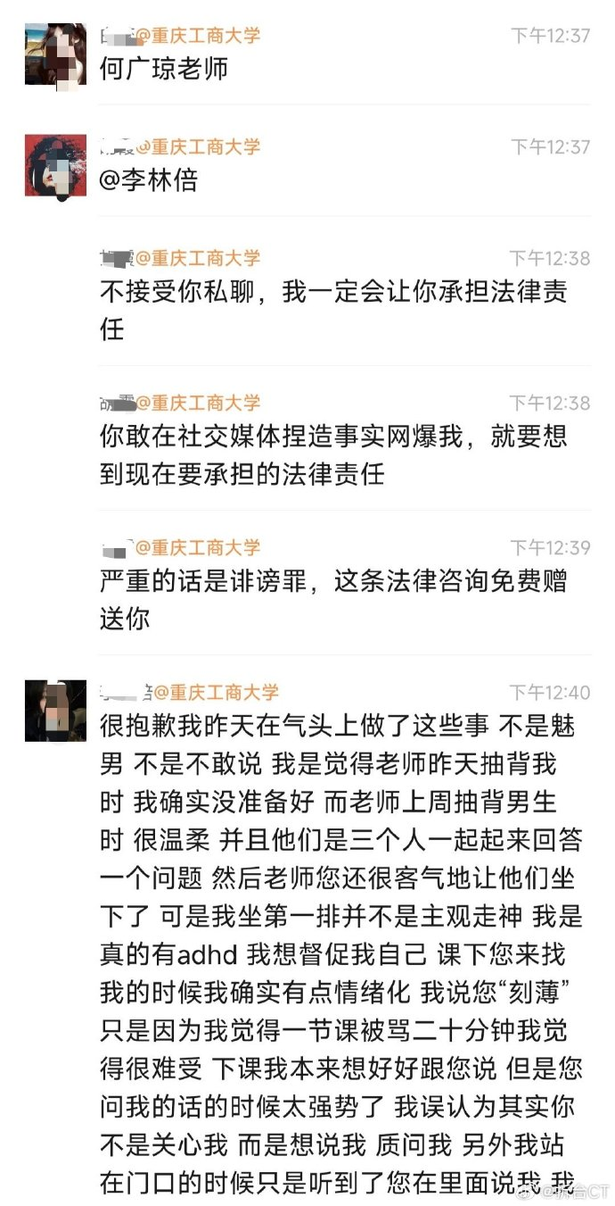 这两起事件不仅让重庆工商大学再次成为公众关注的焦点,也引发了人们对于学生行为、网络言论责任以及师生关系的深入思考。在信息时代,每个人都应该对自己的言行负责,尤其是在网络这个虚拟但影响巨大的空间里。