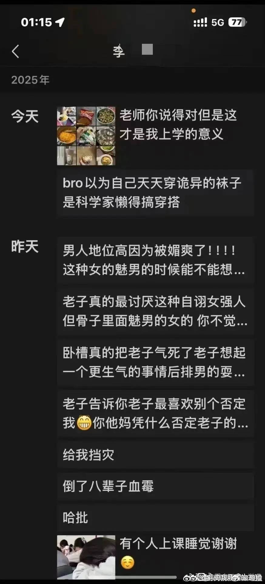 如今,类似的事件再次上演,不过这次的主角换成了另一名新生女权。据截图显示,这名新生因为无法回答老师在课堂上提出的问题,竟然将该校法学专业的女老师挂在了微博上,造谣其上课刻薄且媚男。
