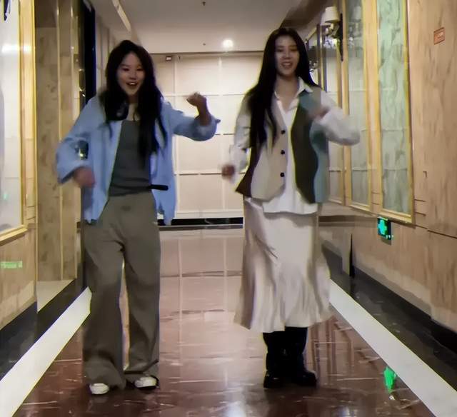 宋妍霏穿着她跳过舞,大长腿超吸睛,窦靖童则比较随意,完全是在共用衣橱。