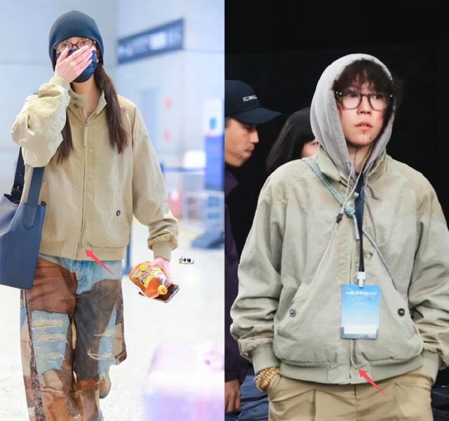 还有这款黑色真皮羽绒服,两人先后都穿过。