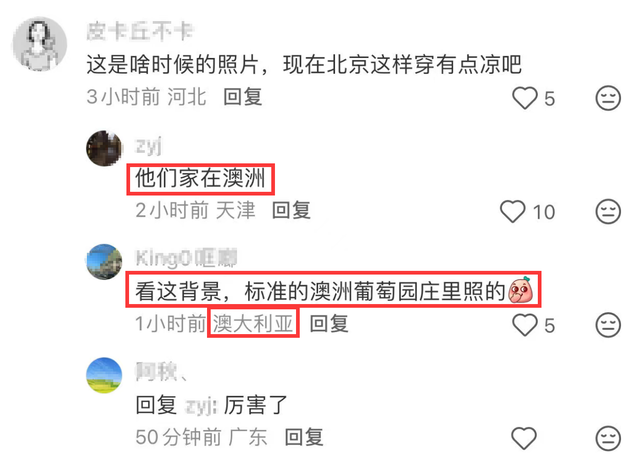 由于郭德纲一家穿着并不厚实,网友猜测他们不在北京。很快,有澳大利亚网友证实,郭德纲一家的合照是在澳洲某葡萄庄园内拍摄的。这一消息进一步引发了网友对郭德纲家庭生活的关注。