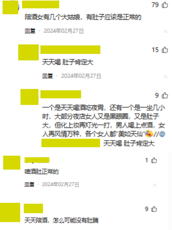 而被选中带进房间的陪酒女,脸蛋长得相当惊艳。只不过她小腹突出,肚子相当明显。看到这一幕时,不少网友都吐槽这位陪酒女是不是怀孕了,“大肚子”太抢戏。