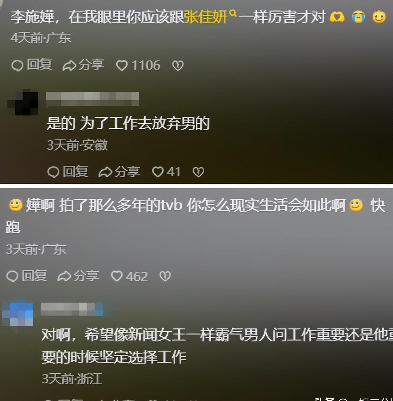 但扮演者李施嬅却一直在感情里受伤,观众们希望她能向张家妍一样厉害。