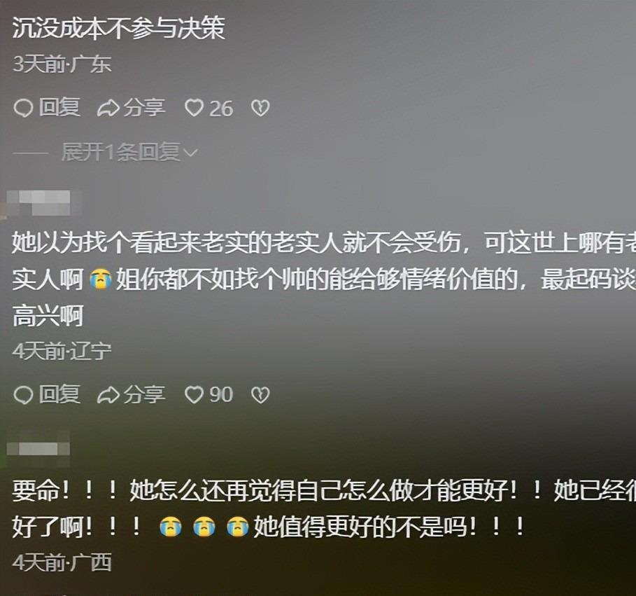 对方一直认错,她一直原谅,对方却迟迟没长进,所以这段磕磕绊绊的感情才会走得如此艰难。
