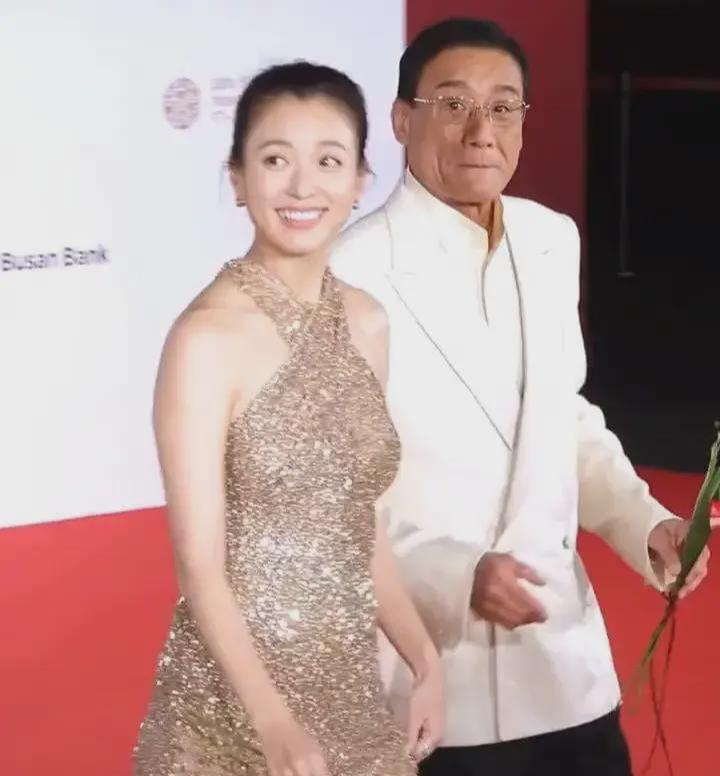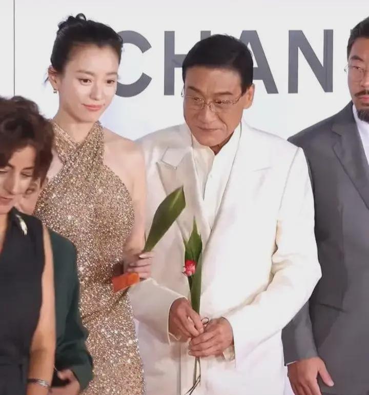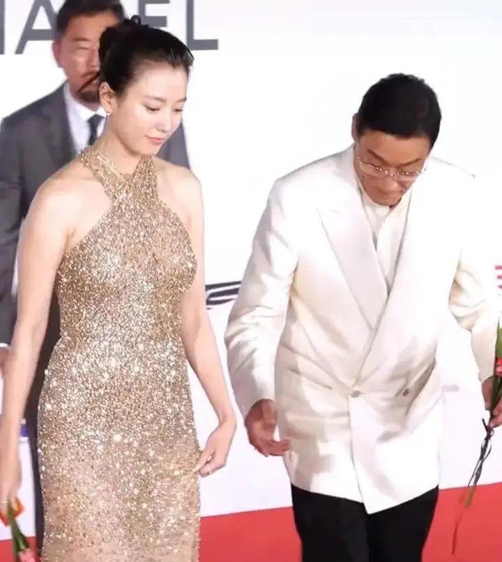 当时,梁家辉右手原本持有一束鲜花,但在行走间,他悄然将花换至左手,右手则空出并微微抬起,似乎有意向身旁的韩孝周伸出。这一动作在红毯走秀中并不罕见,常被视为明星间展现友好与默契的“游戏环节”。然而,出乎所有人意料的是,韩孝周对此似乎毫无察觉,她面带微笑,步伐稳健地继续前行,完全没有对梁家辉伸出的手做出任何回应。