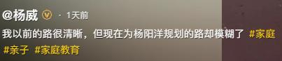 诚然,杨威的教育方式在网上引发过不少争议,有人觉得他对孩子过于 “纵容”,也有人认为他不够 “强势”。但不可否认的是,从最初试图用自己的经验规划儿子的人生,到后来学会尊重孩子的选择、放手让孩子成长,杨威用自己的经历,展现了一位父亲的成长与觉醒。