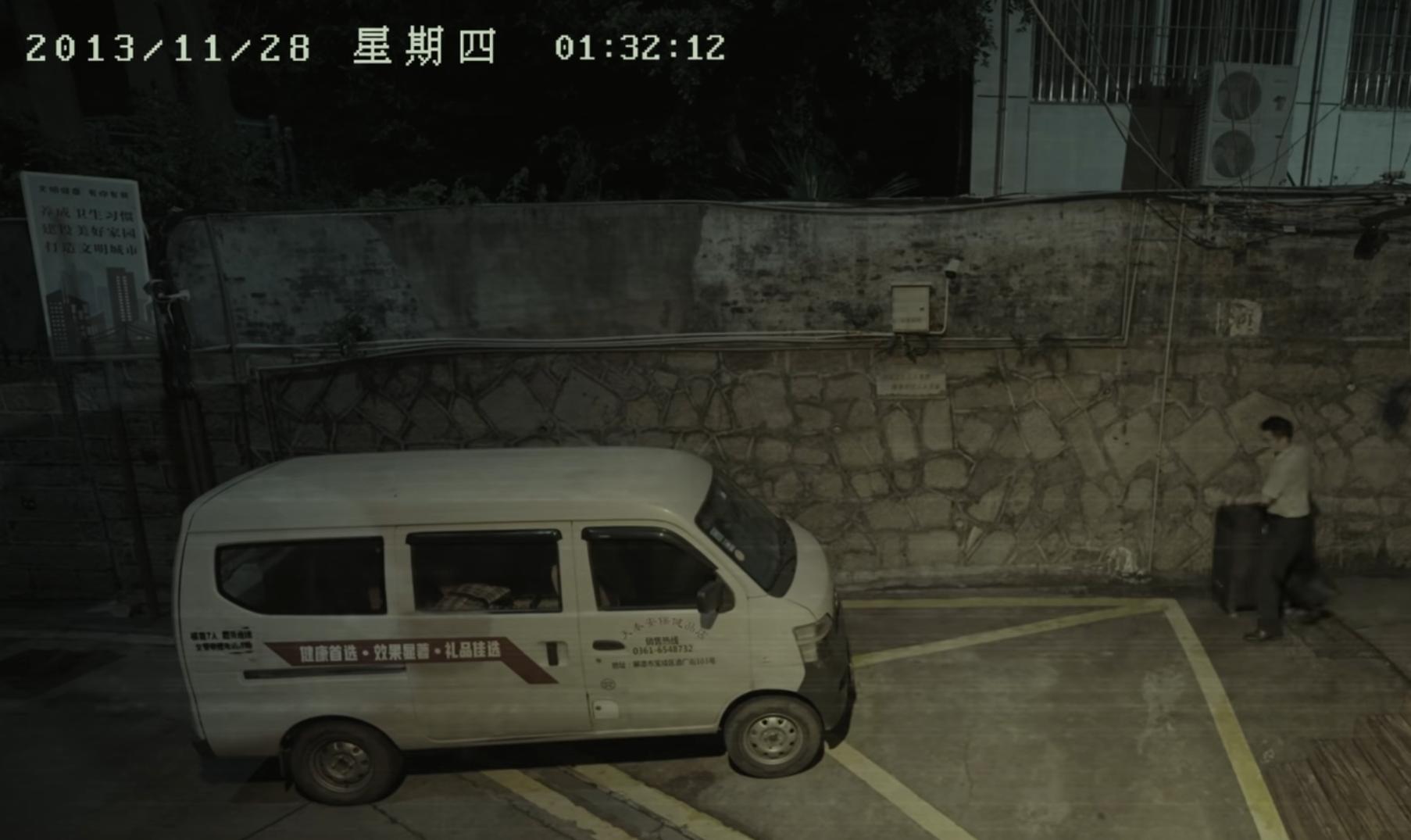 监控摄像头中,男人拖着沉重的旅行箱,一路飞驰将旅行箱扔下了海面....