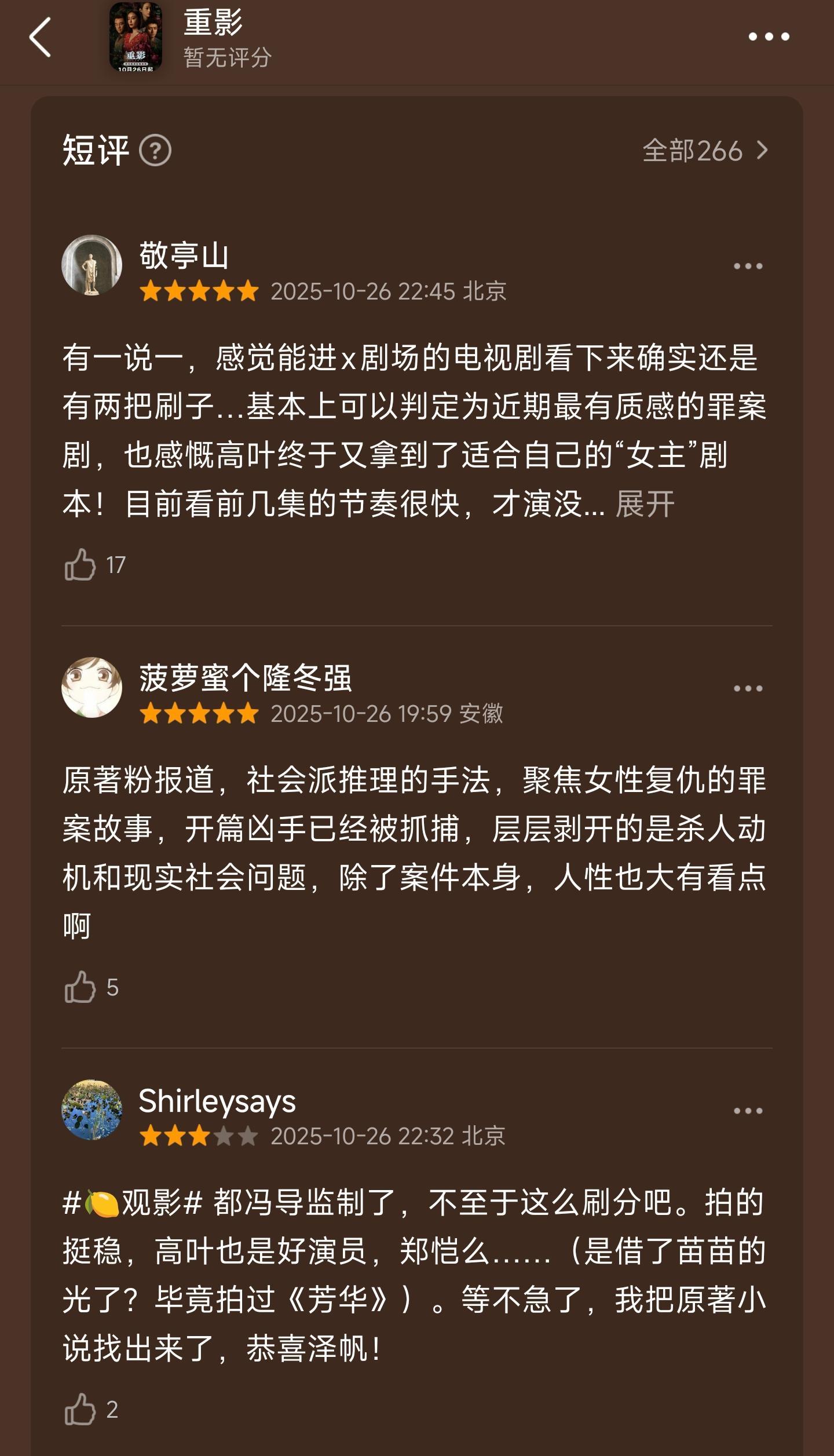 虽然还不至于好到满屏五星,但看完表示惊喜、会追完全剧的观众大有人在。