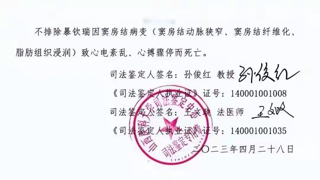 死因鉴定:医院诊断暴钦瑞为心跳呼吸骤停,原因是室上性心动过速、肺栓塞主动脉夹层。然而,石家庄市检察院委托山西医科大学司法鉴定中心进行死因鉴定的时间却是在2023年3月,距离暴钦瑞死亡已经过去了整整8个月。这引发了家属的质疑:为什么不在当天死亡后就进行尸检?