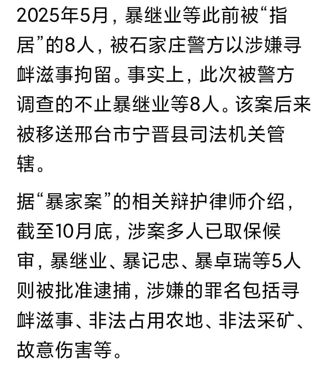 其他涉案人员:暴继业、暴记忠、暴卓瑞等5人也被批准逮捕,涉嫌的罪名是寻衅滋事、非法占用农田、非法采矿、故意伤害等罪名。还有那举报人暴增强也以涉嫌诬告、诬陷等罪名提起公诉,平山县检察院认为,应该以诬告诬陷罪追究暴增强的刑事责任,暴增强被起诉的罪名还包括非法拘禁、敲诈勒索等。