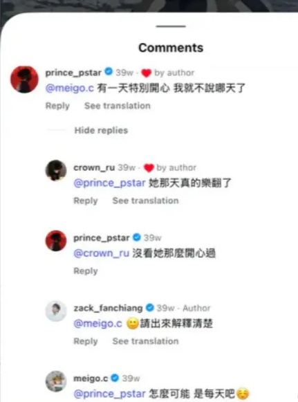 同月,粿粿还以商务合作为理由,上传了她与王子的双人合照。底下评论区还有“大预言家”留言,说“不知道这以后会不会有故事”