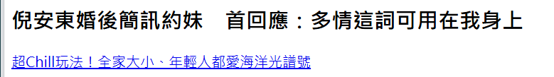 承认已婚不到三个礼拜,倪安东就被拍到在夜店搂着长发辣妹,事后他解释是大学同学,并放上一张亲吻老婆的照片以求平息风波。