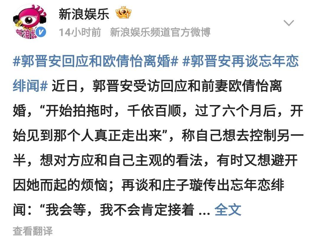 近日,郭晋安受访回应和前妻欧倩怡离婚,“开始拍拖时,千依百顺,过了六个月后,开始看到了真实的对方”,称自己会想控制另一半,想让对方与自己想法一致,有时又想避开因她而产生的烦恼;再谈和庄子璇传出忘年恋绯闻:“我会等,我不会去幻想、计划会发生什么事”,坦言感情生活里女儿已给了很多快乐。