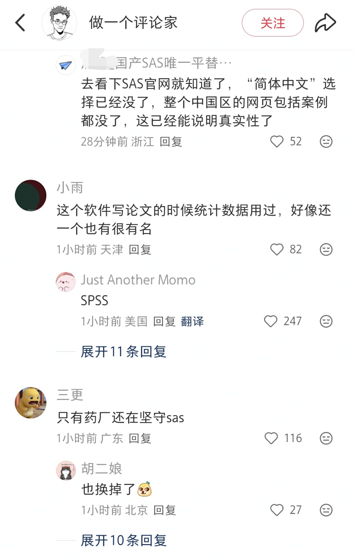 有业内人士在评论区透露,SAS的官网已经悄然移除了简体中文选项,这一变化无疑暗示了其战略调整的意图。