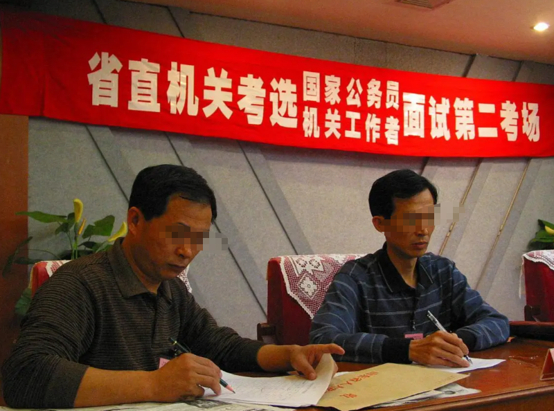 主考官是个五十岁左右的男人,戴着眼镜,表情严肃,手里拿着笔和纸。