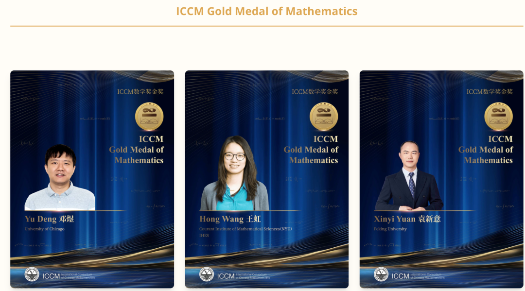ICCM数学奖金奖三位获奖者(左起邓煜、王虹、袁新意)