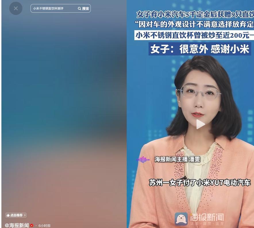 近日,一位苏州女士因放弃小米汽车5000元定金,意外收到9个限量版水杯,并在视频中连声感谢小米公司,引发网友热议。这一“迷惑操作”让不少人直呼看不懂。
