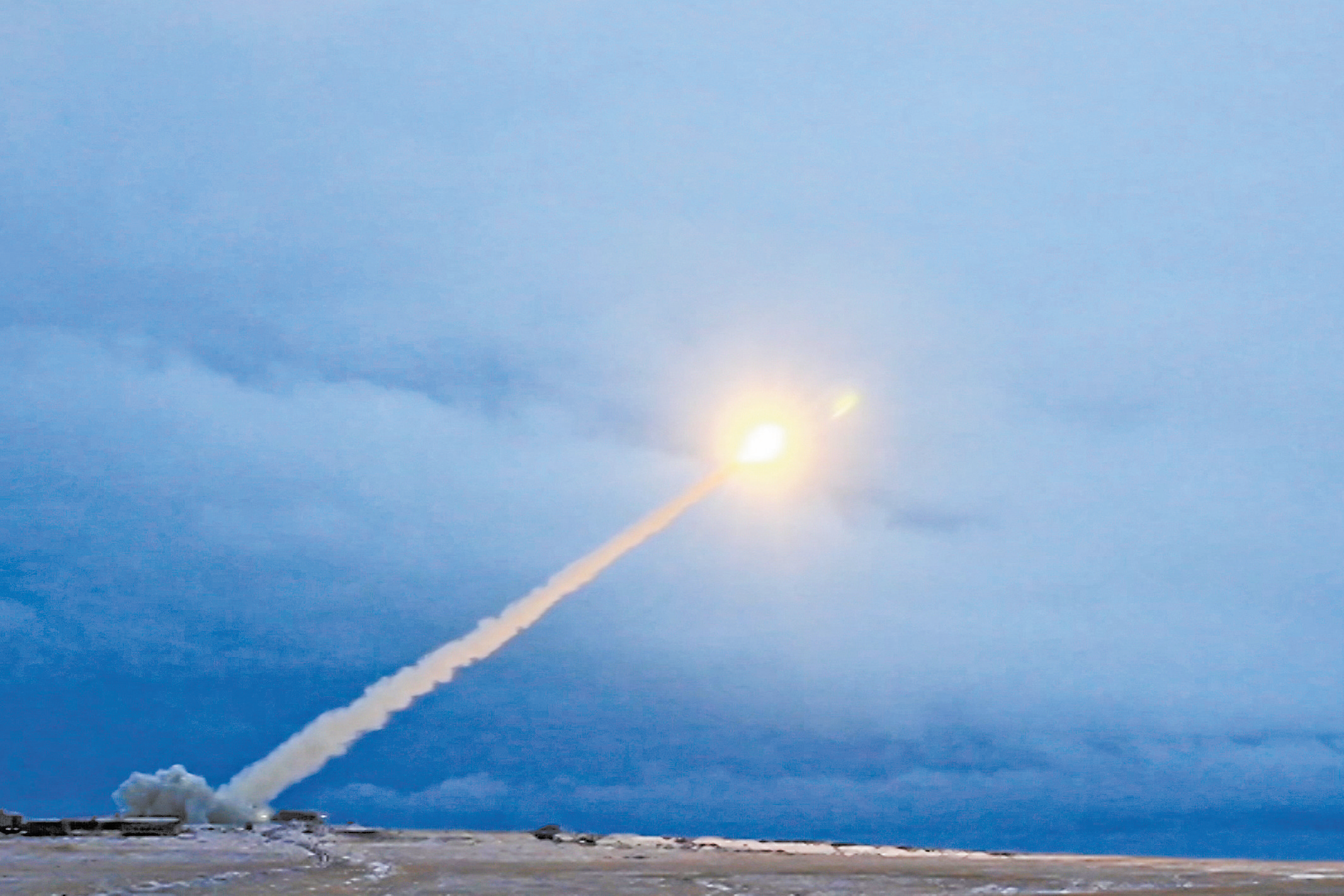 普京日前宣布,“海燕”巡航导弹已完成“决定性试验”。图为俄方2018年公布的核动力洲际巡航导弹发射的视频截图。(视觉中国)