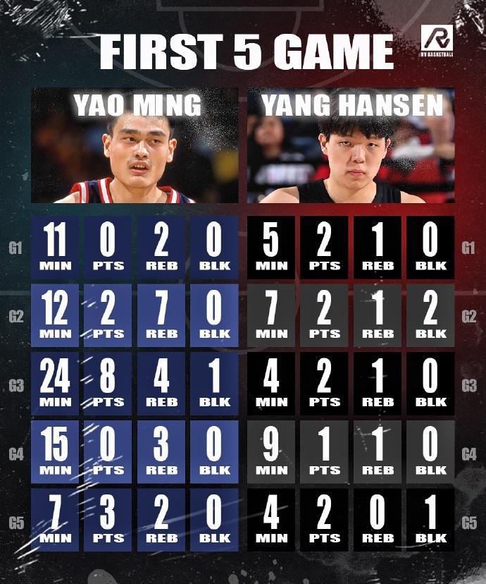 实际上,对比姚明,杨瀚森前5场比赛的表现并不算太差。他总共拿到了9分、4个篮板和3个盖帽。然而,与姚明相比,这一数据确实存在一定差距。姚明在首场比赛低迷后,后续表现逐渐提升。具体来看,姚明首场0分2篮板,第二场2分7篮板,第三场8分4篮板,第四场0分3篮板,第五场3分2篮板,5场比赛总共贡献了13分和18个篮板。