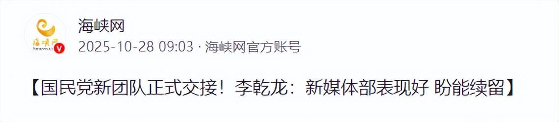 海峡网:《国民党新团队正式交接!李乾龙:新媒体部表现好 盼能续留》,2025-10-28