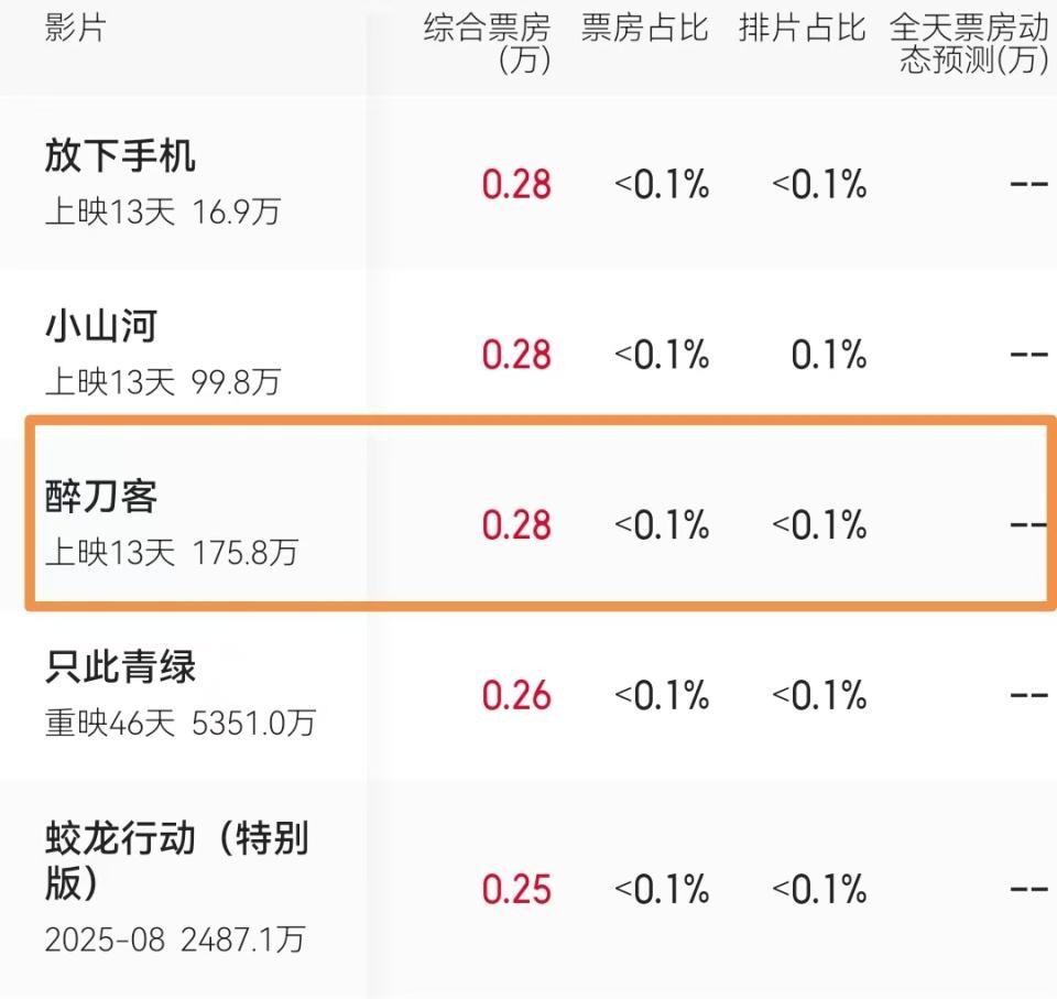 从目前形势来看,《醉刀客》的院线征程基本已经结束了。