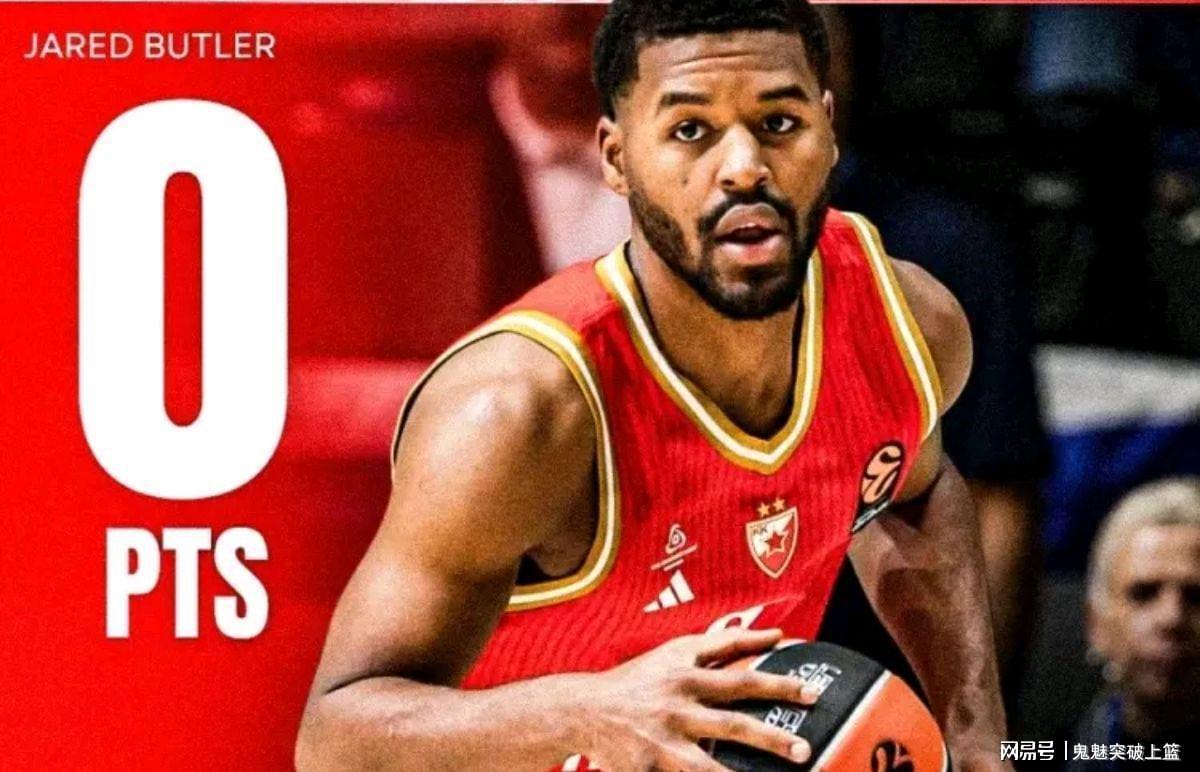 在贝尔格莱德红星99-92击败特拉维夫马卡比的比赛中,迎来欧篮联首秀的贾里德·巴特勒全场仅出战2分钟,个人数据栏最终定格在0分0板0助0断0帽,外加两次犯规。这真的让人很难相信,这是那个今夏季前赛在对阵洛杉矶湖人时,全场25投14中,三分9中5,6罚2中,爆砍35分7篮板9助攻1抢断的贾里德·巴特勒。