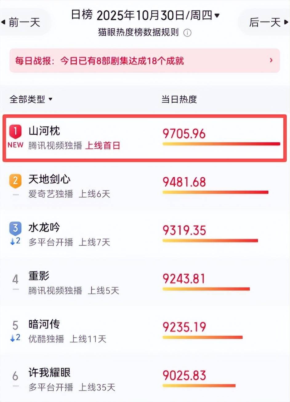 果不其然,首日仅放出4集,直接力压其他平台所有作品,斩获全网热度冠军。