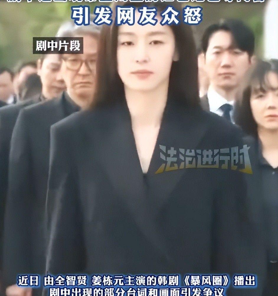 抖音视频:@法治进行时 《全智贤主演韩剧<暴风圈>内容引争议出现“为什么中国会偏好战争”台词 剧中还出现带五角星的红色地毯等内容引发网友众怒》 发布时间:2025-09-19