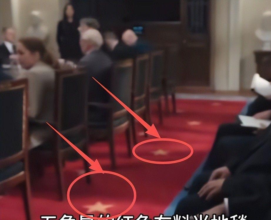 更刺痛人心的一幕出现在国际会议场景中:红毯铺展全场,其上赫然印有黄色五角星图案,象征意味浓厚。可这些符号却被剧中角色随意踩踏,脚步交错间毫无敬意。