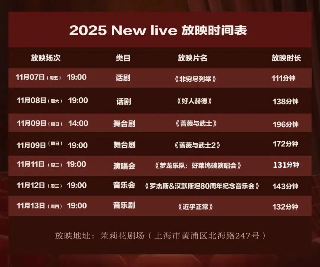 2025年11月7日至11月13日,一连七部来自英国国家剧院、伦敦西区及世界舞台的顶尖佳作,即将如约而至,放映片单囊括话剧、音乐剧、演唱会现场等多元类型。