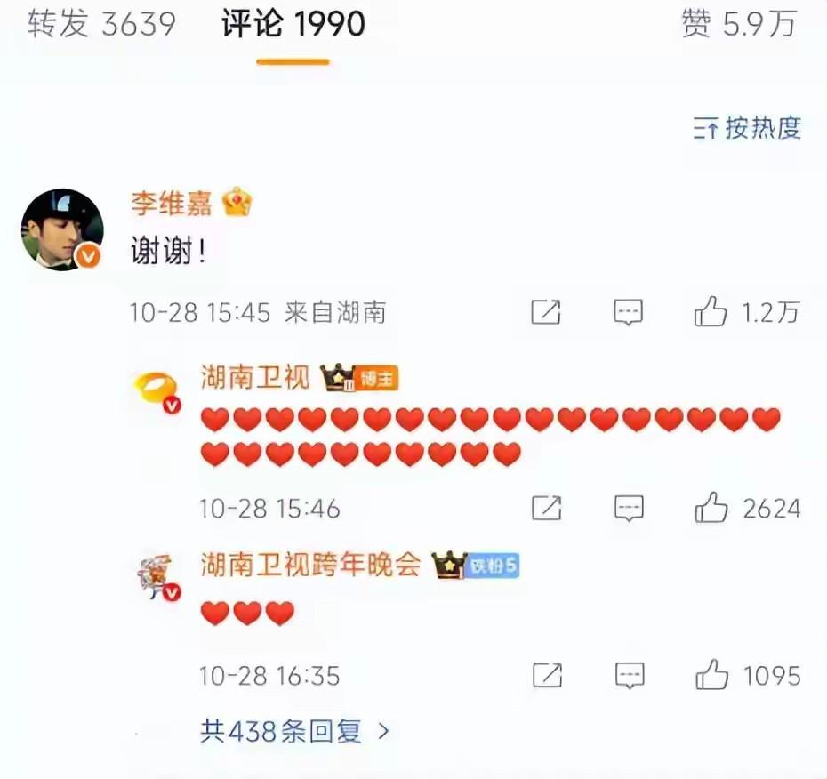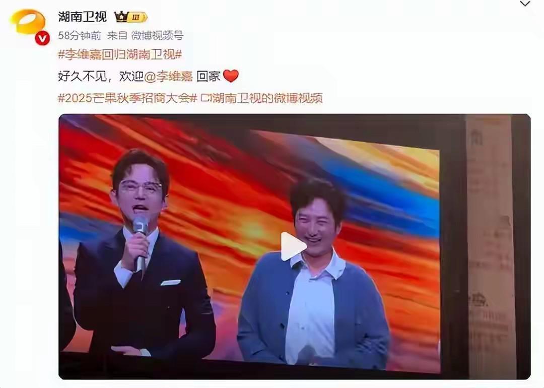 李维嘉登台当天,芒果官方不仅在社交平台上发布了一条“好久不见,欢迎回家”的微博,正式确认了他的回归。