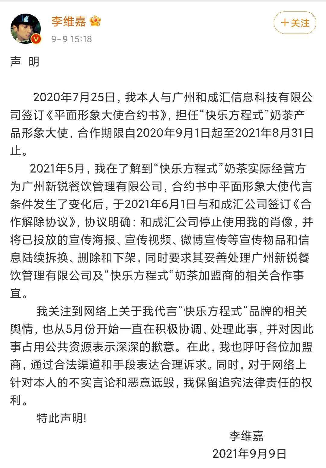 深陷丑闻的李维嘉没有办法,虽然他的合约早已到期,但众怒难消,他只能选择暂时从大众的视野里消失。