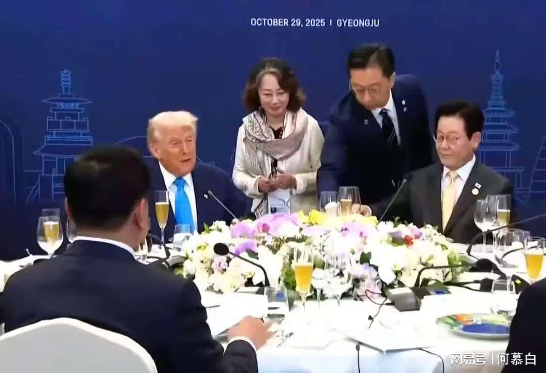 网友对此展开趣味解读:有人调侃‘合影保持距离,圆桌拉近距离,主办方算漏了空间魔法’;有人猜测‘两位领导人可能全程通过翻译交流,避免眼神接触’;亦有观点认为‘圆桌象征平等,完全规避确实困难,主办方已尽力’。值得关注的是,尽管李在明坐主位,但美方代表更显主导态势,不过其仅参与晚宴,后续开幕式及会议将由李在明主导。