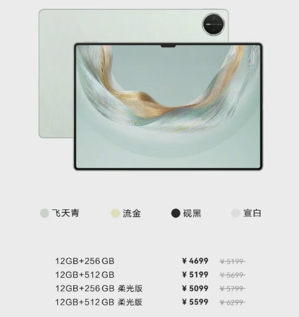 MatePad Pro 12.2英寸2024款全版本降300元,12GB + 256GB版本现在3499元起。MatePad Pro 13.2英寸全版本降500元,起售价从5199元降到4699元;不过2025款已经推出,起售价3999元,买老款可得慎重啦。