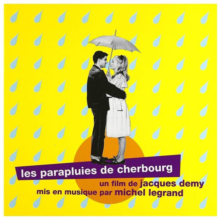 首先不得不提的就是《瑟堡的雨伞》(Les parapluies de Cherbourg)。这部电影最大的特点就是全片没有一句对白,所有台词都用唱的。这种介于歌剧与歌舞片的全唱式电影属于本片导演雅克·德米前无古人的独创。所谓“配乐”,一个“配”字就说明了音乐元素在整部电影中的定位。然而,对于《瑟堡的雨伞》而言,这点并不成立,音乐实打实是它的语言和灵魂。