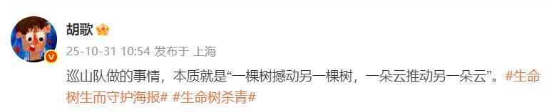 随后,该剧的两位主演杨紫和胡歌分别在其个人社交媒体上转发了杀青消息,并分享了自己的感受。杨紫写道:“我们留下的每一个印记,都会被见证。”这句话透露出她对这部作品的珍视和期待。而胡歌则用了一句富有哲理的话来表达:“巡山队做的事情,本质就是‘一棵树撼动另一棵树,一朵云推动另一朵云。’”这句话不仅赞美了巡山队员的奉献精神,也体现了剧集的深层含义。