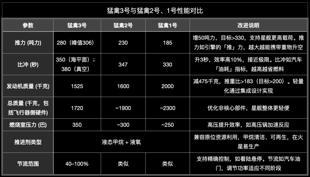 猛禽3号的性能数据,直接展现了其工程突破。推重比逼近物理极限,意味着更轻的质量能产生更大的推力;燃烧效率的提升,则转化为更高的比冲与更低的成本。